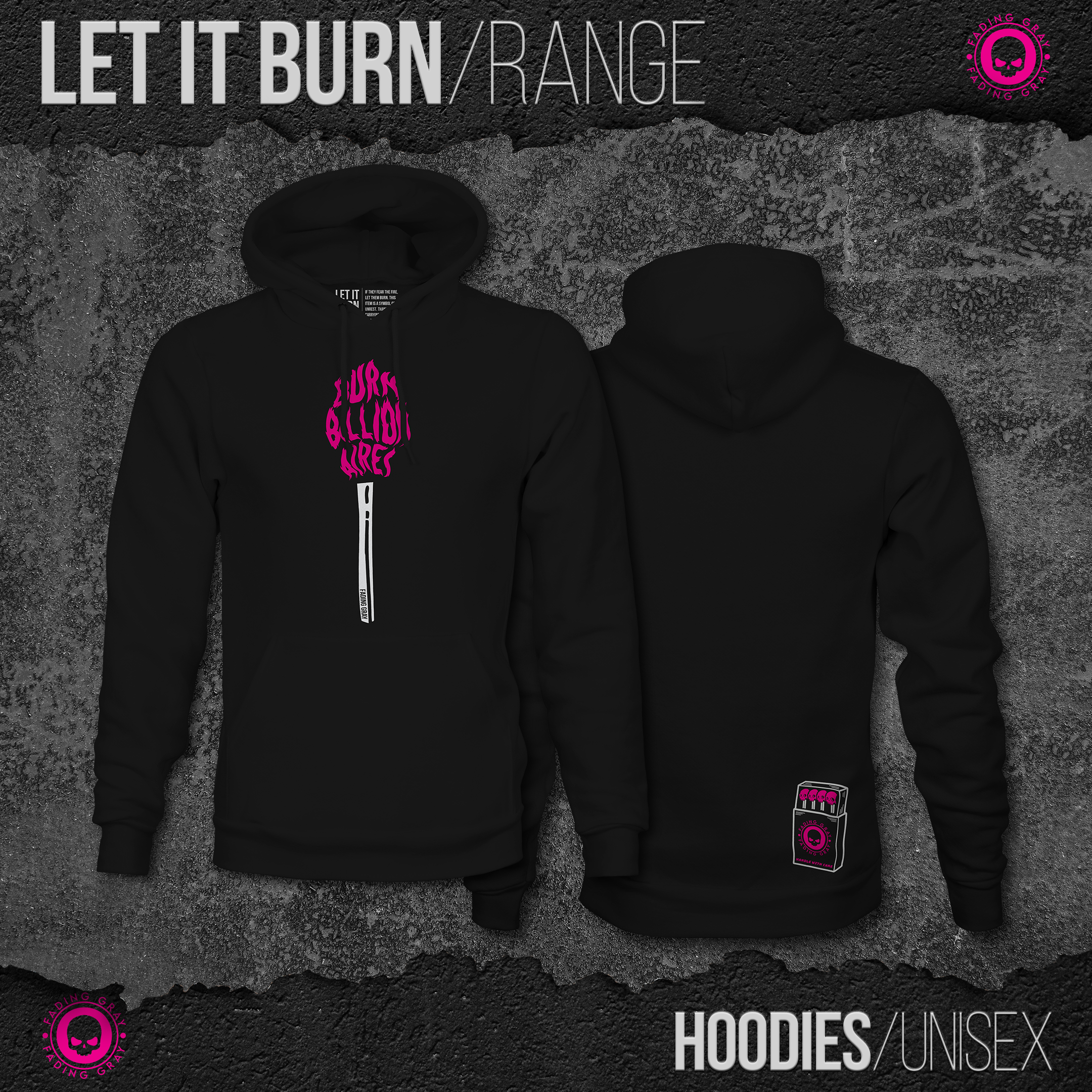 Born from sparks of defiance and fed by the flames of unrest, the Let It Burn hoodie range is for those who aren’t afraid to ignite the status quo. Featuring a striking matchstick design with “Burn Billionaires” scrawled in distorted fire-font and a bold matchbox on the back, this unisex hoodie is a symbol of resistance, rage, and metal.
